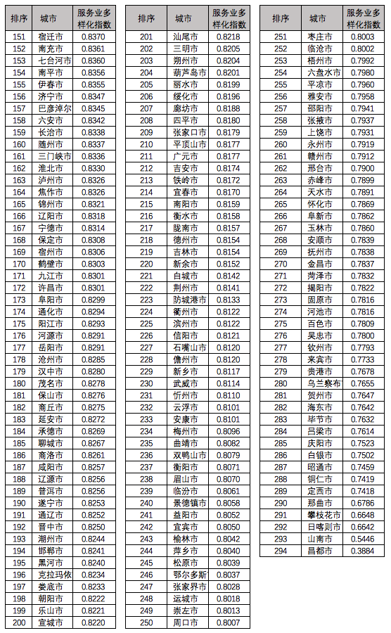附:根据最新城市统计年鉴(2019年出版)计算的2018年294个城市的多样化指标